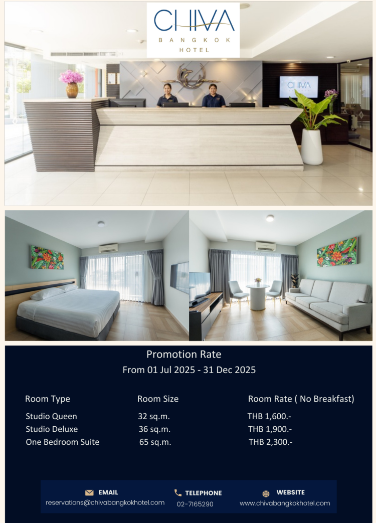 Comfort certainly meets convenience when you stay with us. Rest, relax and rejuvenate at Chiva Bangkok. We look forward to welcoming you.
